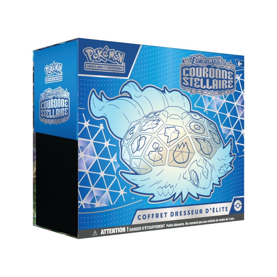 Le Coffret Dresseur d’élite - Écarlate et Violet : Couronne Stellaire est l'ensemble parfait pour tout dresseur  souhaitant dominer l'arène. Ce coffret luxueux contient tout ce dont vous avez besoin pour vos combats et pour enrichir votre collection :